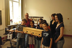 Die GRÜNE LIGA und der bündnisgrüne Wahlkreis-Abgeordnete Andreas Otto haben am Dienstag, den 28.4., einen Mauersegler-Koloniekasten gemeinsam mit Schülerinnen und Schülern der Klasse 5b der Schule am Falkplatz gebaut und an einer Außenwand des Schulgebäudes in der Gleimstraße angebracht.