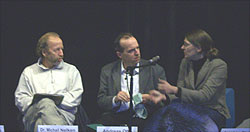 Danach Diskussion von Volker Ratzmann mit Dr. Martin Lindner, dem Spitzenkandidaten der FDP. Die Veranstaltung wurde von der ehemaligen Ministerin Andrea Fischer moderiert. Kulturelle und politische Gemeinsamkeiten und Unterschiede zwischen den beiden Parteien füllten fast zwei Stunden.
