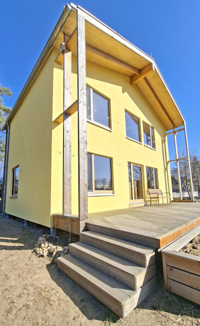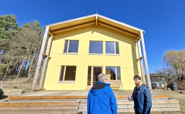 Gebaut wurde es 2024. Das Richtfest konnte schon nach drei Tagen gefeiert werden, da die Wände vorgefertigt wurden.