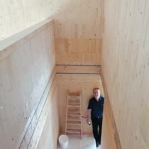 Eine dreiviertel Stunde haben wir über die Zukunft des Holzbaus, seine Vor- und Nachteile gesprochen und über die besonderen Herausforderungen für den Holzbau in der Großstadt.