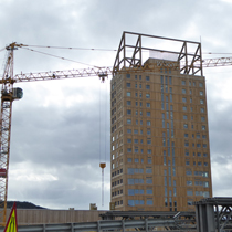 Kritiker sehen die Stabilität und Brandgefahr der Holz-Hybrid-Bauweise, doch geht die Baubranche hier bereits sehr zukunftsorientiert voran: anhand einer besonderen Konstruktionstechnologie, die beispielsweise auf Brettsperrholz setzt, werden die Holzplatten jeweils flach im 90-Grad-Winkel verleimt und anschließend unter hohem Druck verbunden.